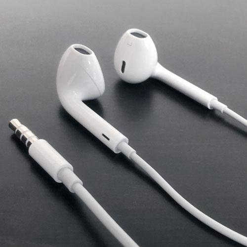 Plain white corded Hearbuds. ie Apple "Earpods"